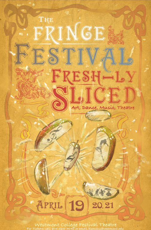 Westmont students present new works for theater, dance and performance art at “Westmont Fringe 2012: Fresh-ly Sliced,” which is modeled on fringe festivals throughout the world, April 19-21 from 6:30-10:30 p.m., beginning at Porter Theatre. A $10 general admission wristband, good for all three days of the festival, may be purchased at the box office or through Beth Whitcomb at (805) 565-7040.